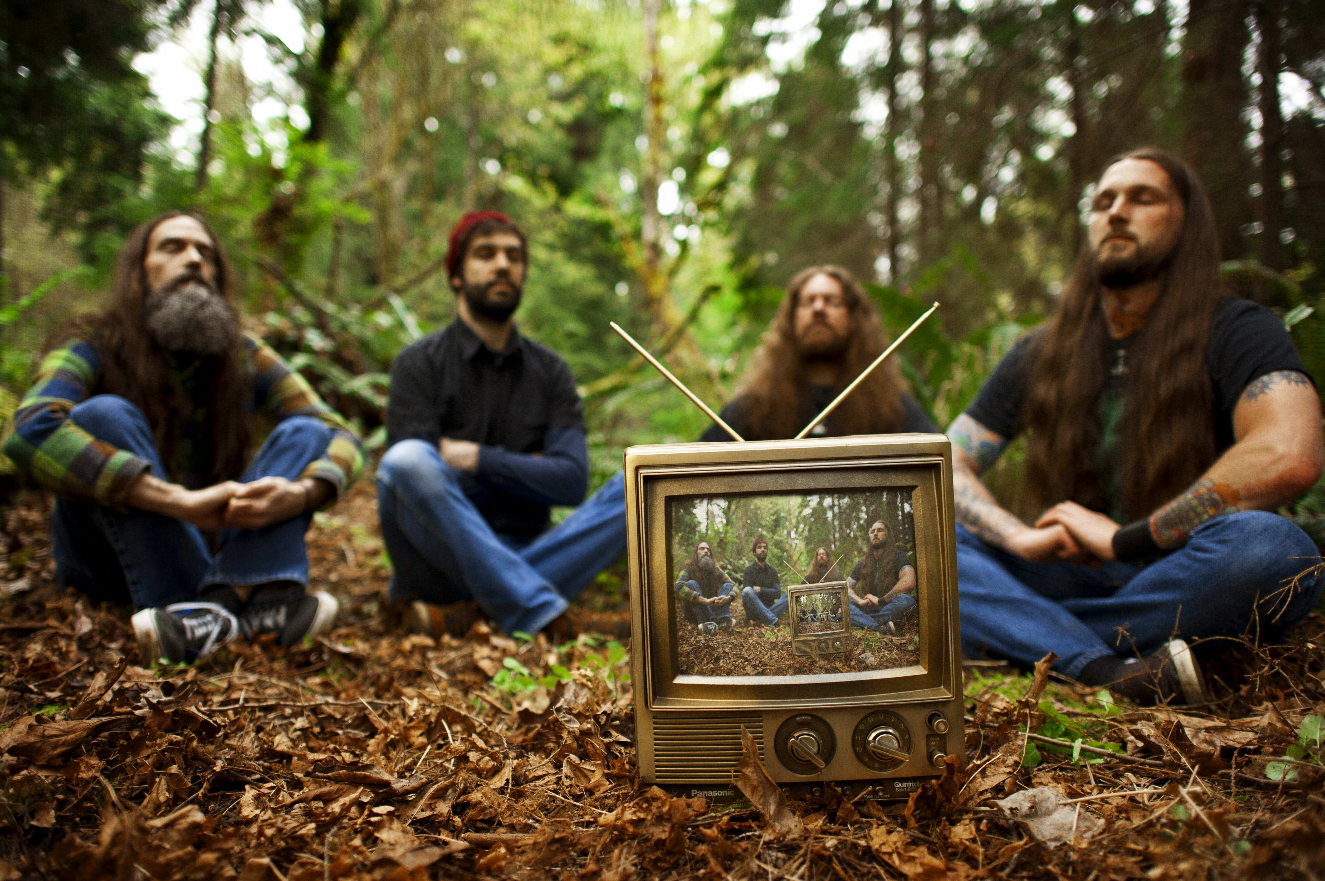 “Forestelevision” opens up with a Sunn 0)))-like drone dirge that rumbles and simmers in place, letting the track take some time before it really starts to rumble. Weird keyboards and gurgly growling erupt, and the track slips into fearsome territory like it’s trying to shake you up early and get inside your head. Funeral doom smoke rises as the band slithers along the path to doom glory, but about 10 minutes into the song, the pace kicks up, melodies start to soar, and a psychedelic wash slides over everything. Guitars slip to a trickle, strings make their presence known, and the song goes into a mesmerizing, Far Eastern-style swell of relaxation and tranquility. But, as you may guess, that serenity is short lived.
