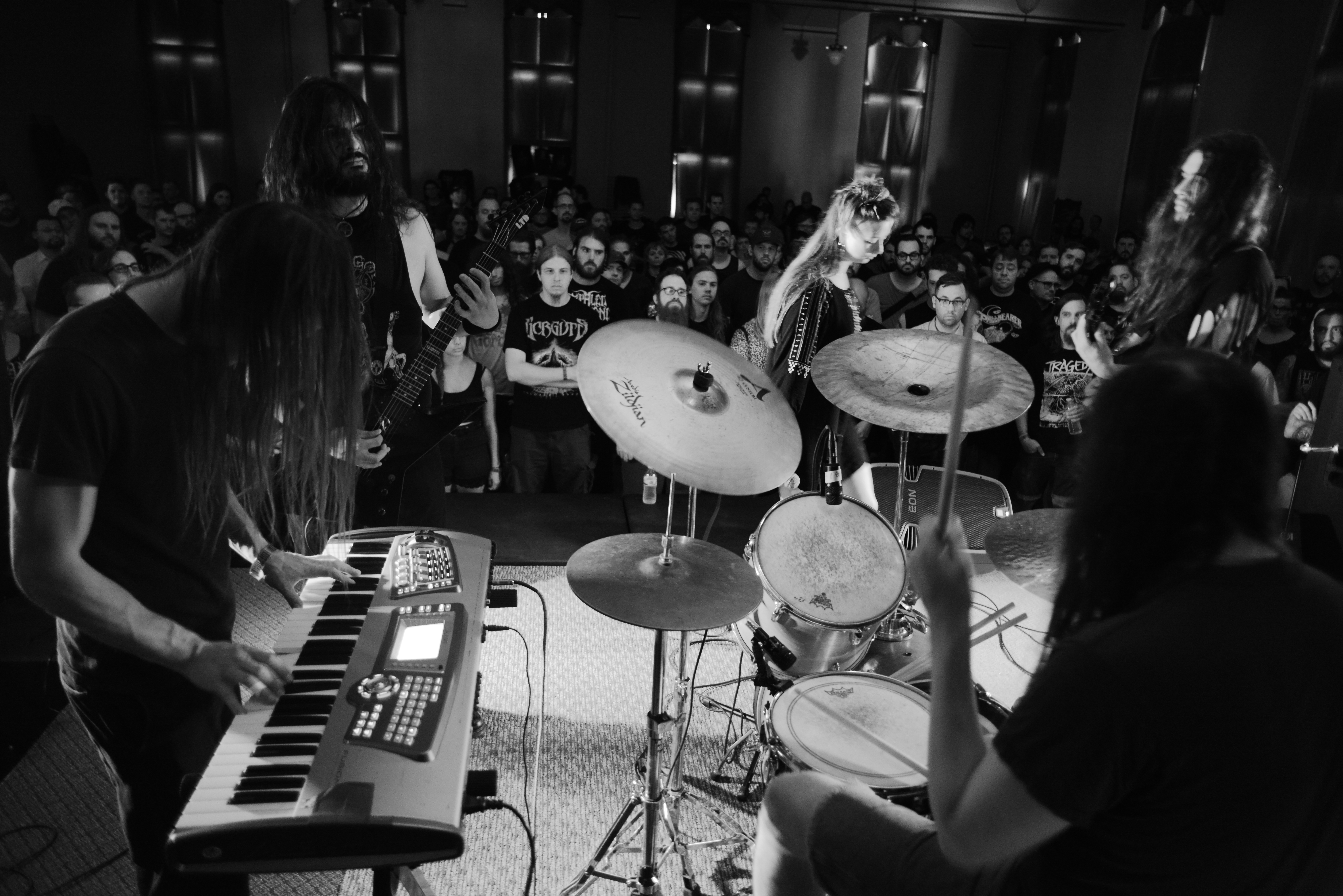 If you need time to breathe and reflect after “The Deluge,” it makes sense, but instead, tumble head-first into an untitled cut that wails into rupturing melodies, with a great dose of blackness afoot, vocals that could lacerate, and some really great guitar work that has a classic metal feel to it. In fact, that happens a few times over the span of this album, which is a good time. The final two minutes of this thing just boil over and give the song a truly epic conclusion. “Entropy” is the longest cut at 15:28, and is it ever a world toppler. It unfurls majestically, with guitars catching fire and then the whole thing blowing apart. Synth sheets rain down, as the rest of the band tangles you in a black metal pretzel, with the vocals unleashed in a tempered manner. There are some murky, moody sections, with their artistic tributaries trickling more slowly. But late in the song, a new sense of intensity and speed is realized, as the band drives the caravan down a canyon wall and through the gates of hell. The vocals strike hard, the music causes thunder claps, and it all fades into an ambient void. Closer “Hedgecraft” runs 13:19, and it opens into melodic punishment and a pace that lets the colors and fires slowly build. The guitar work spirals, while Rachel’s words work to run your face into the gravel, and later they strike the gas pedal again on an assault that could cause you great anxiety. In a good way. The band tears into a smothering Iron Maiden-like gallop as the song goes on, with the vocals piercing and then everything dramatically changing the pace yet again. Every element is brought on heavily, like hot wax being poured from a cauldron, and as the guitars glimmer, the music erupts, and the last gasp of vocals deliver their final messages, the song quickly fades into the night, leaving you a heaving mess in a pool of sweat on the floor.