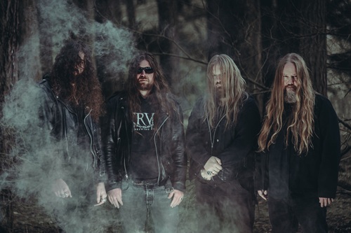 “Cathartes Aura” begins Drouth’s portion, and it’s speedy and vicious, guitars attacking as punishing howls rain down, wrecking and ripping its way into you. The storm picks up strength, terrifying cries chewing nerve endings, a melodic surge arriving and pulling you under, colorful electricity cresting and burning off. “The Outer Church” mashes with maniacal force, blazing and tearing flesh from bone, the soloing erupting and spitting lava from its core. The playing flattens and thrashes, somehow figuring out a way to truck even harder, melodies providing the fuel, catapulting into a violent finish as Stikker howls, “I feel my breath claw at my throat as it is parted by a monstrous hand.”
